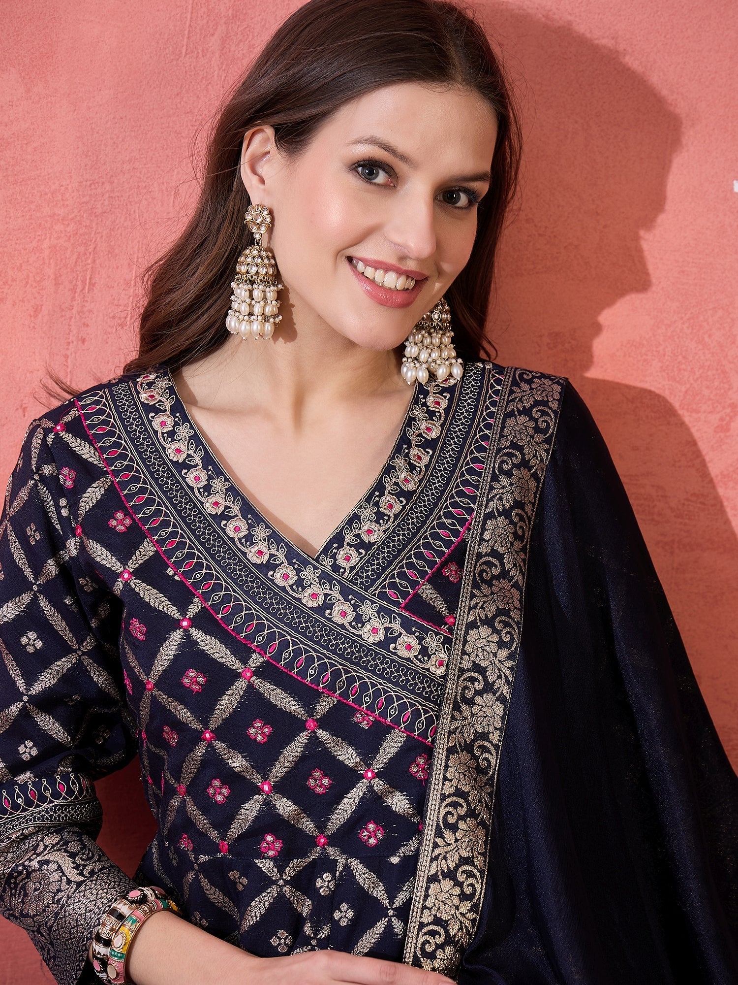 Elevate your ethnic style with this Women Blue Color Embroidered Kurta, Trousers & Dupatta Set, designed to offer timeless elegance with modern comfort. Crafted from premium polyester fabric, this Anarkali kurta set drapes beautifully and is ideal for special occasions.