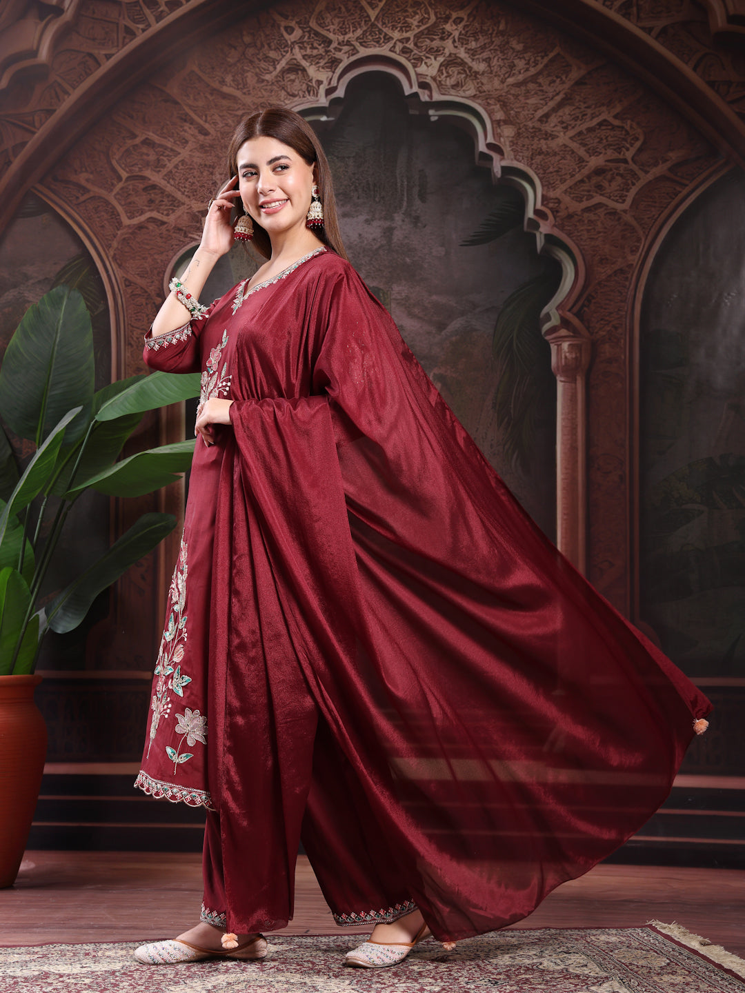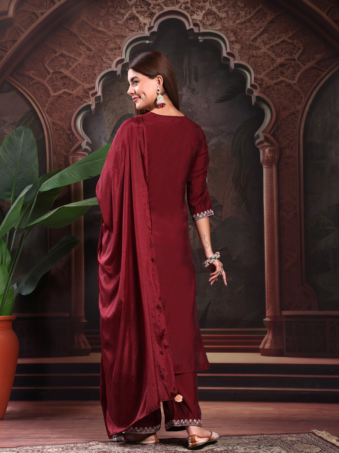 Step into timeless elegance with this Maroon Embroidered Kurta Set from RAMA’S, featuring a matching palazzo and dupatta. Perfect for festive occasions, celebrations, or ethnic gatherings, this ensemble blends traditional craftsmanship with modern style. The intricate embroidery enhances the rich maroon shade, creating a graceful and sophisticated look. At RAMA’S, fashion is more than clothing—it’s a way to express your story without words.