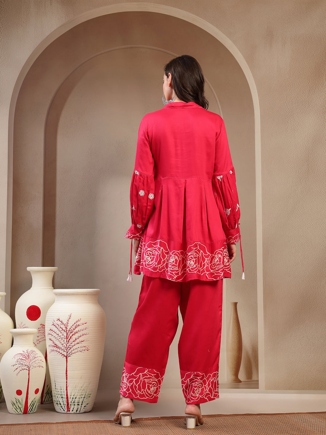 Women Pink Rayon Kurta Palazzo Co-ord Set