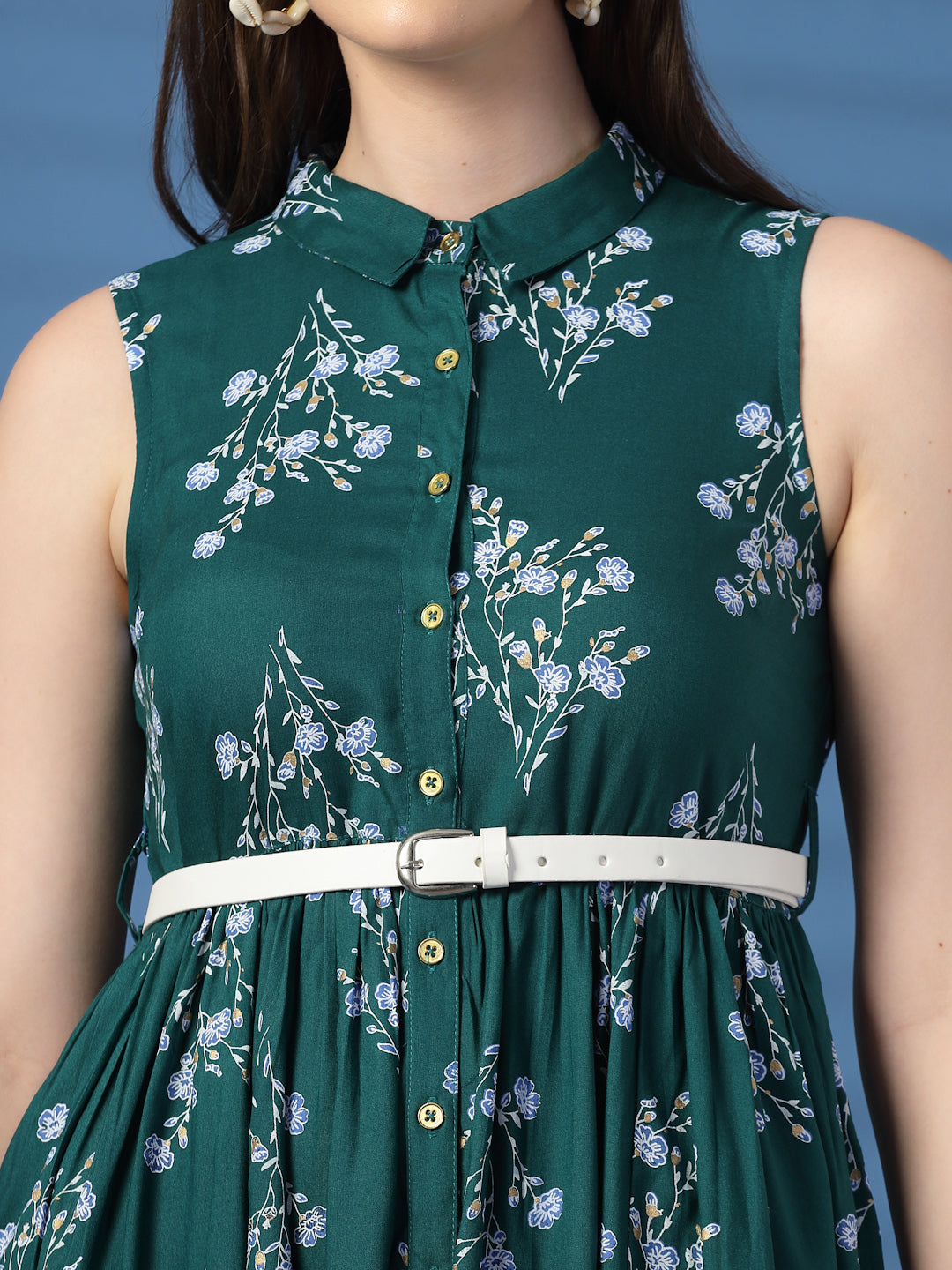 Elevate your everyday style with this Women Floral Print Shirt Midi Dress, crafted from lightweight and breathable rayon for lasting comfort. The sleeveless design adds a modern, chic touch, making it an ideal choice for casual outings as well as semi-formal gatherings.