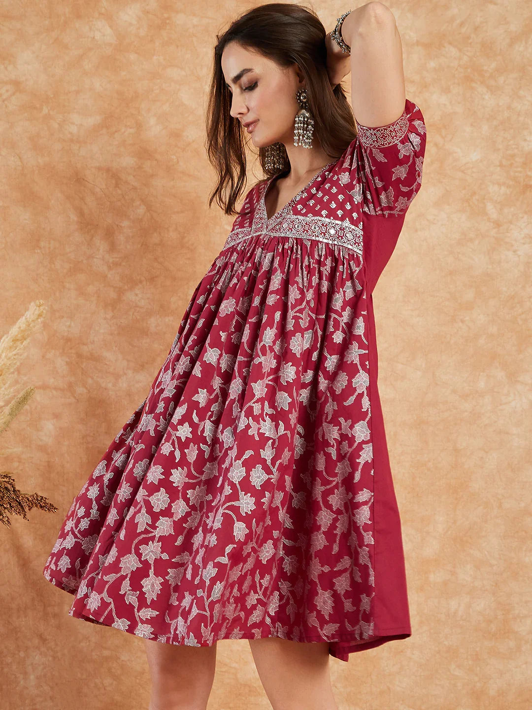 Elegant maroon color with fine embroidery detailing