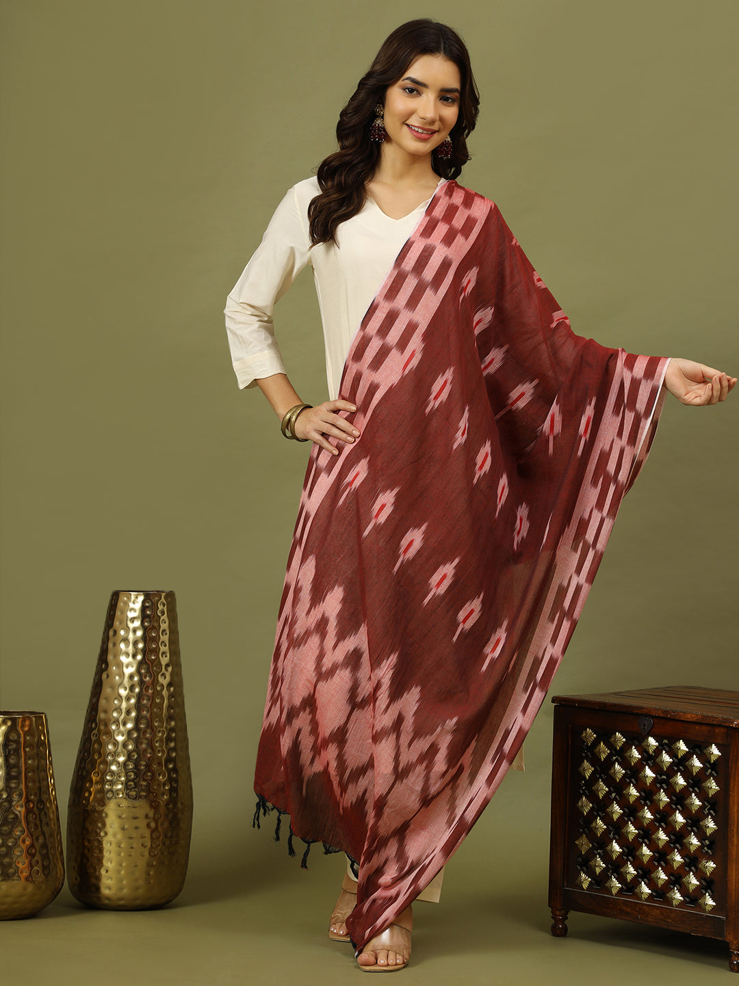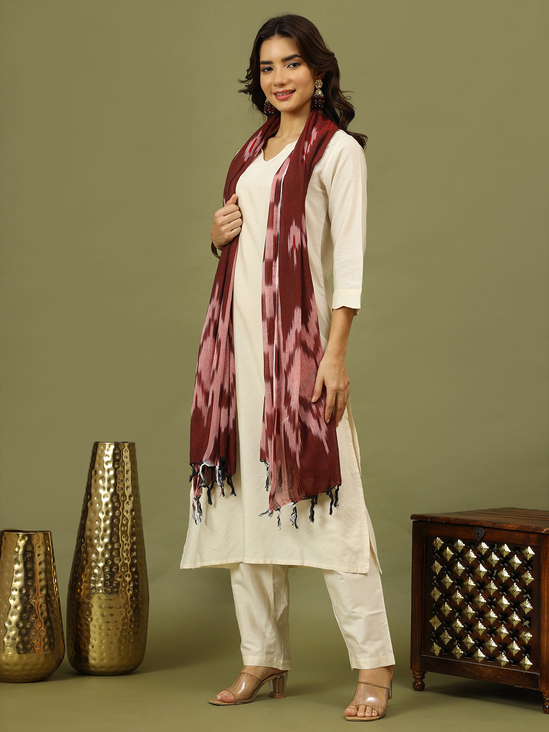 Elevate your ethnic wardrobe with this refined off-white kurta set, thoughtfully styled with a rich brown organza dupatta featuring subtle self-design patterns. Understated yet stylish, this ensemble strikes the perfect balance between simplicity and tradition.