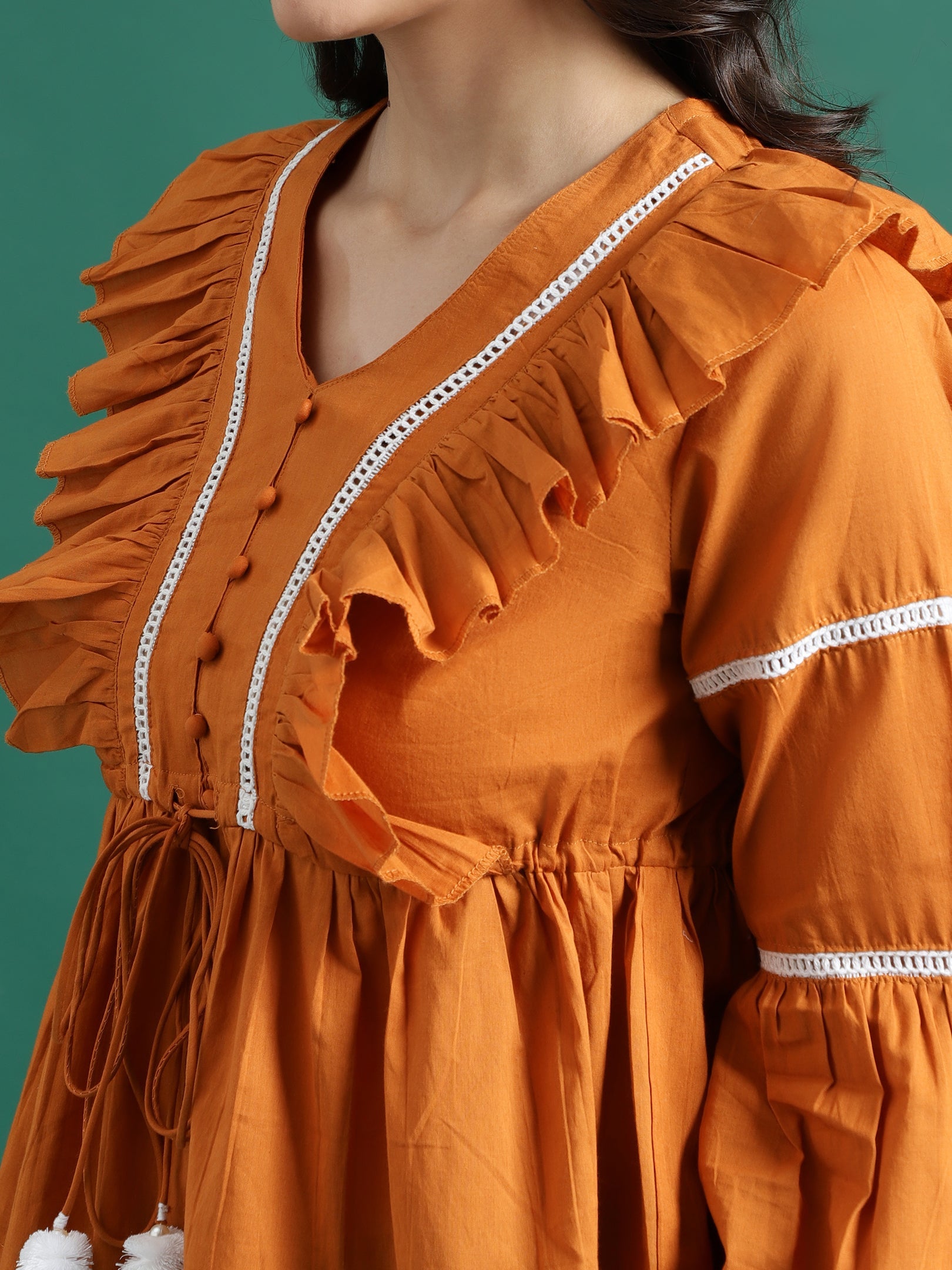 righten up your everyday wardrobe with this Women Mustard Color V-Neck Gathered Cotton Peplum Top. Crafted from soft and breathable cotton, this stylish top offers all-day comfort with a flattering silhouette.