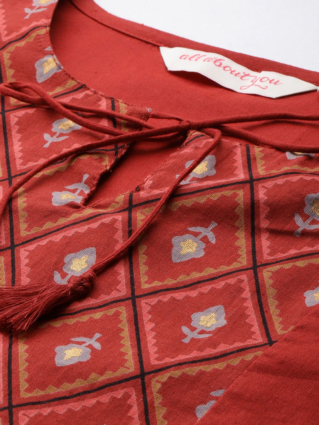 Add a touch of effortless elegance to your wardrobe with this rust embroidered top. Designed with a stylish tie-up neckline and delicate embroidery detailing, it offers a relaxed yet refined look perfect for everyday and casual outings.