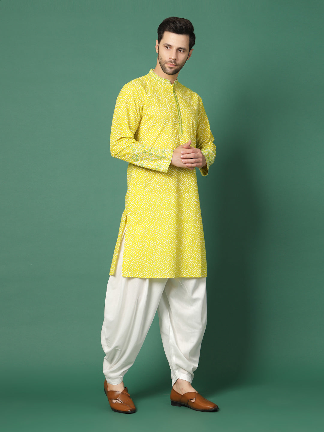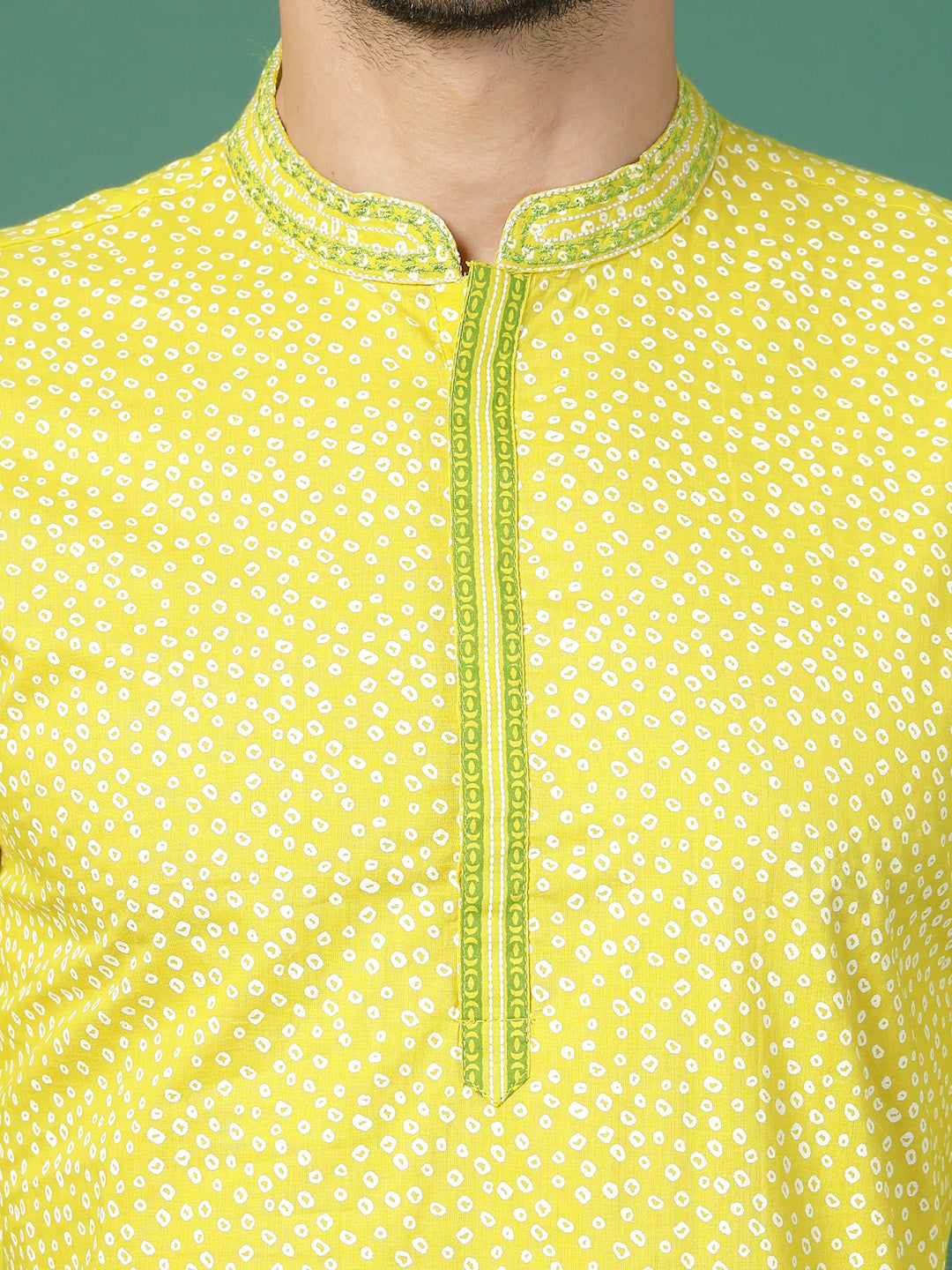 Elevate your ethnic style with this men lime green embroidered kurta featuring a classic mandarin collar and full sleeves. Designed with subtle all-over embroidery and a comfortable fit, this kurta is ideal for festive celebrations, weddings, cultural events and traditional gatherings.