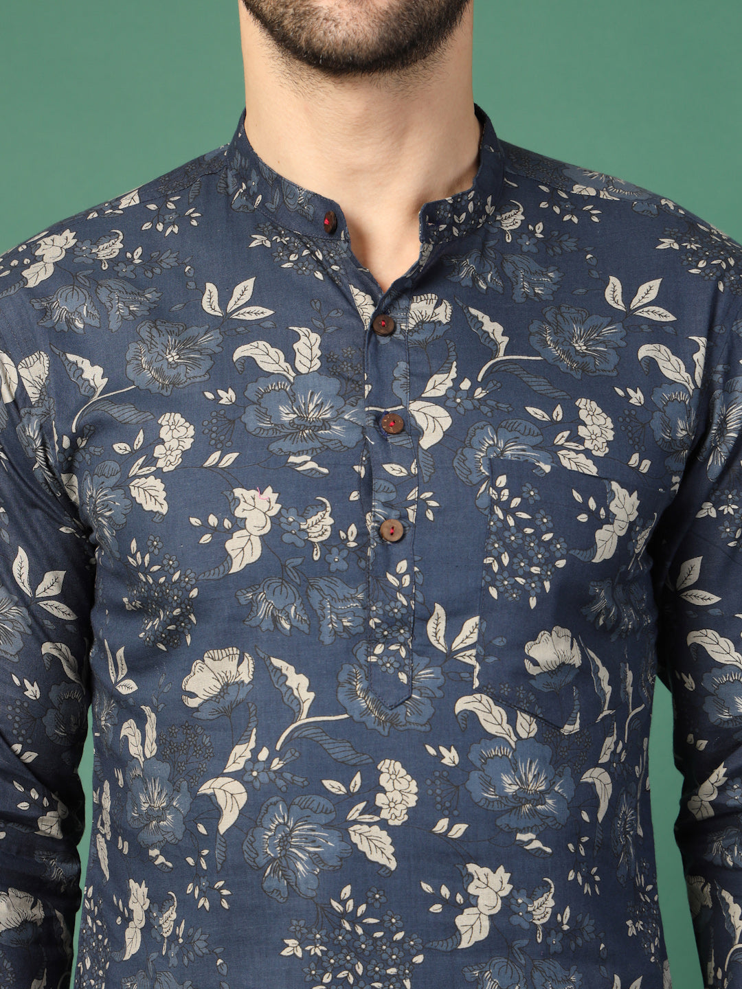 Upgrade your ethnic style with this Men’s Blue Printed Kurta, crafted to deliver a perfect balance of tradition and modern fashion. Made from high-quality Madrinen fabric, this kurta offers a soft feel and breathable comfort for all-day wear. The elegant printed design adds visual appeal, while the mandarin collar and full sleeves give it a refined and sophisticated look. Ideal for festive occasions, family functions, or casual ethnic wear, this kurta is a versatile wardrobe essential for men.