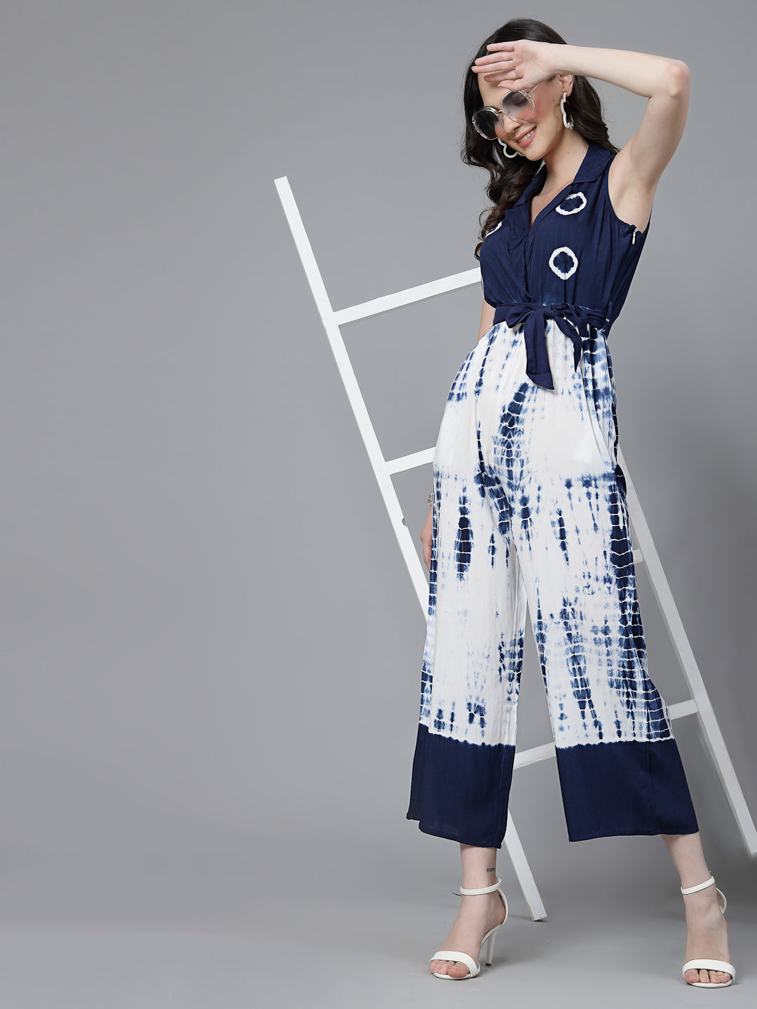 Women Blue Color Tiy-Dye Print Jumpsuit Dress