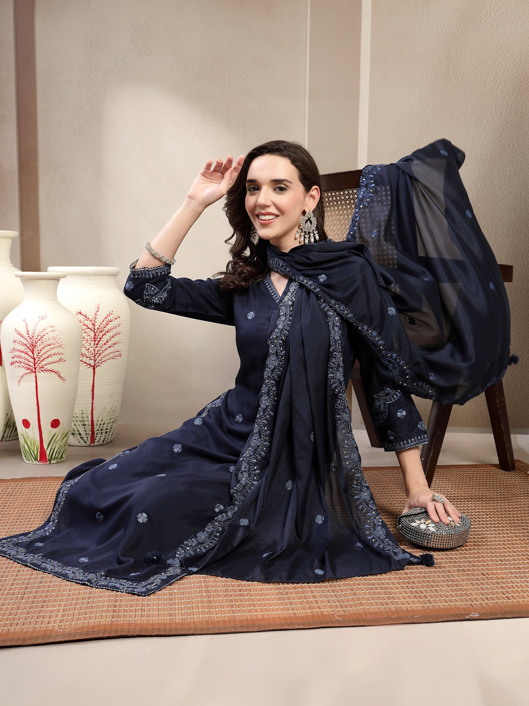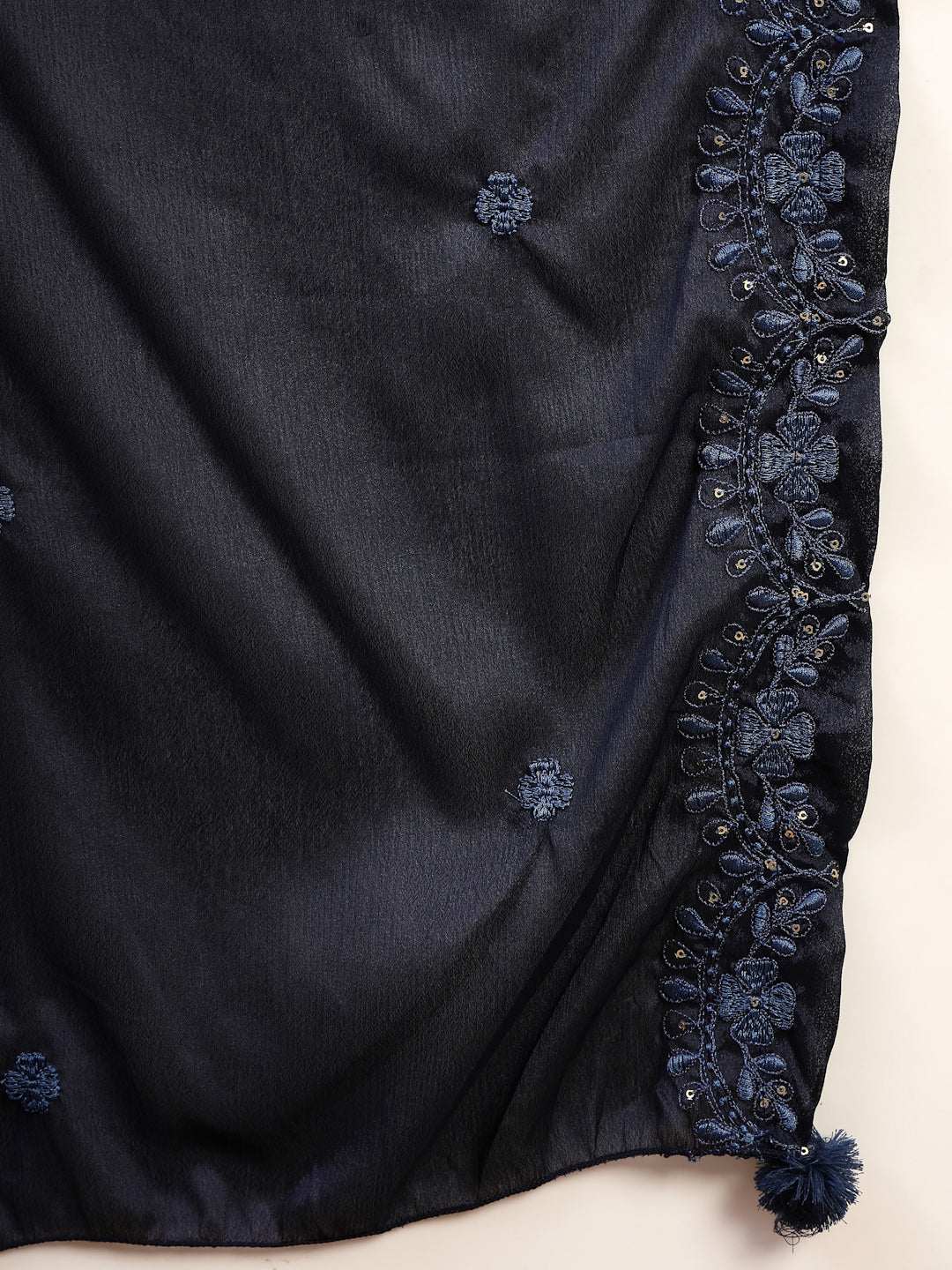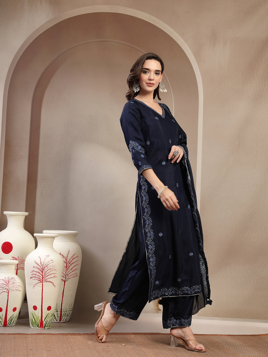 Women Blue Polyester Kurta Palazzo & Dupatta Set
