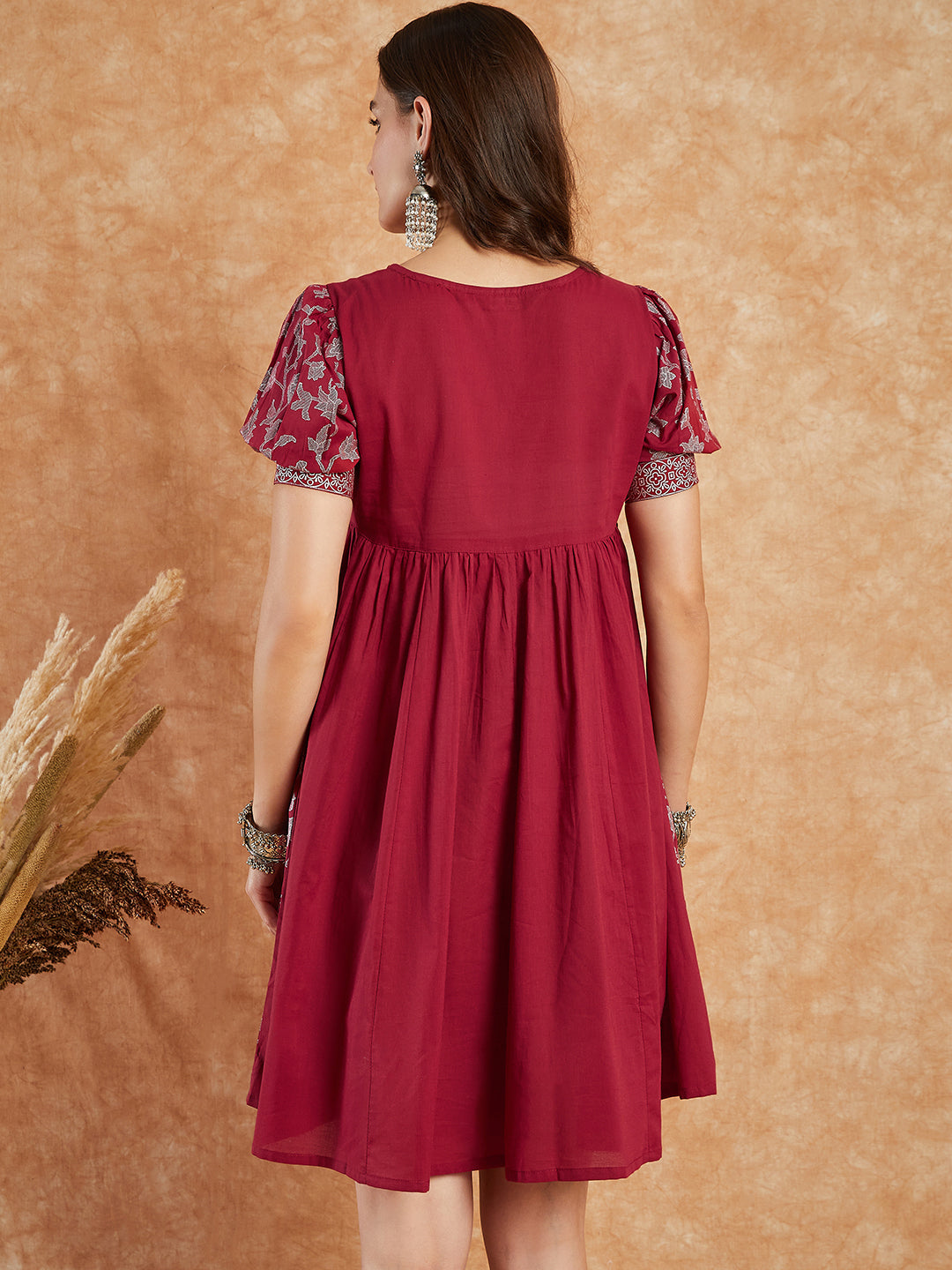RAMA'S Women Maroon Color Embroidery Half Sleeves A-line Kurta