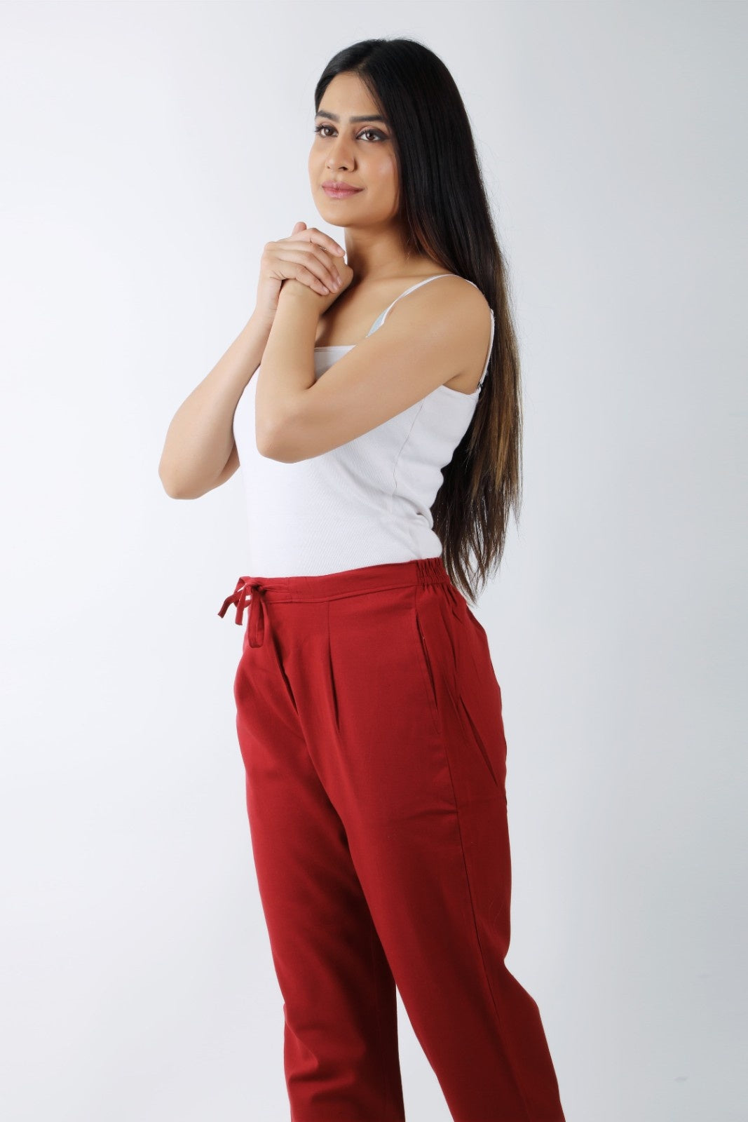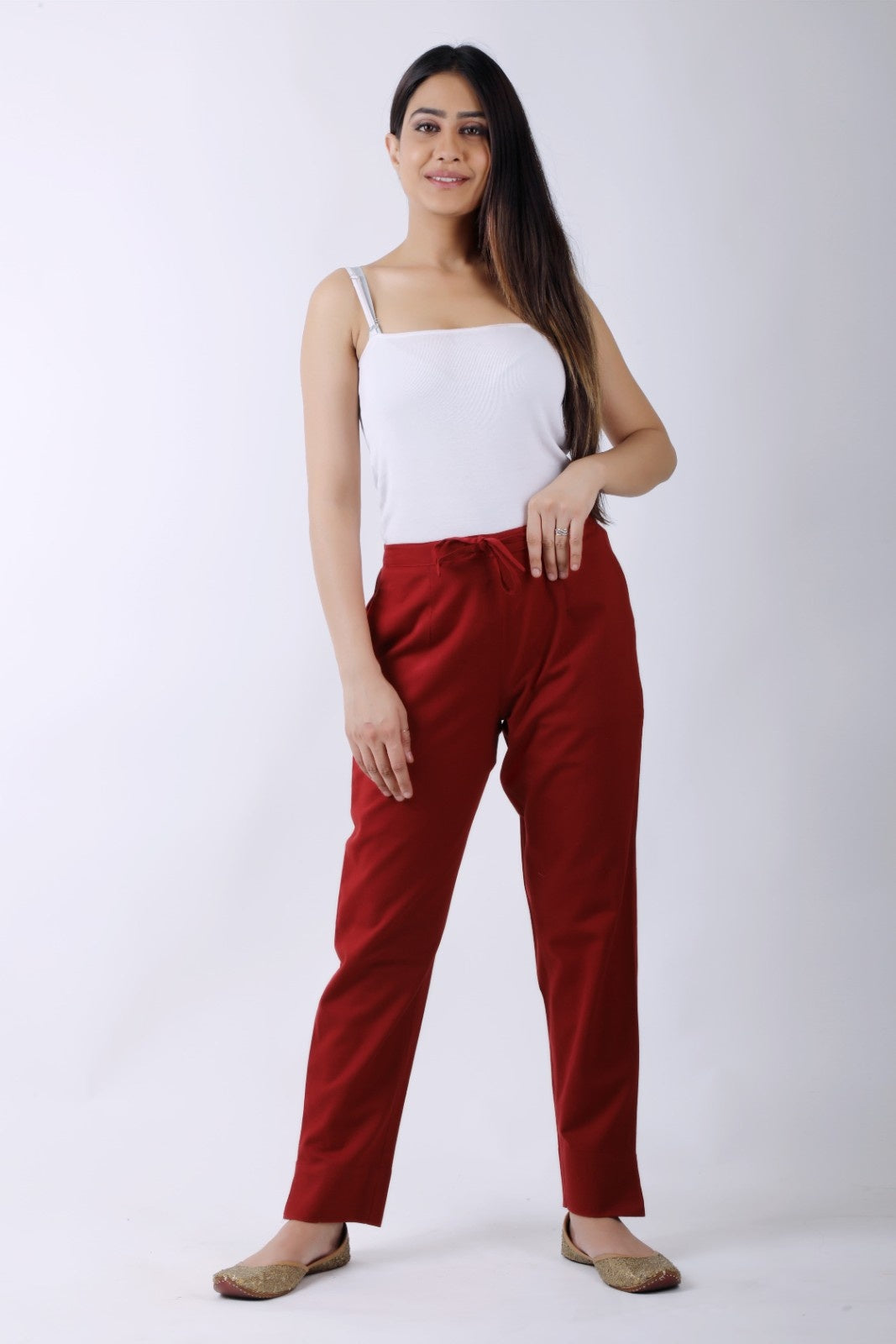 Women Meroon Regular Cotton Trousers