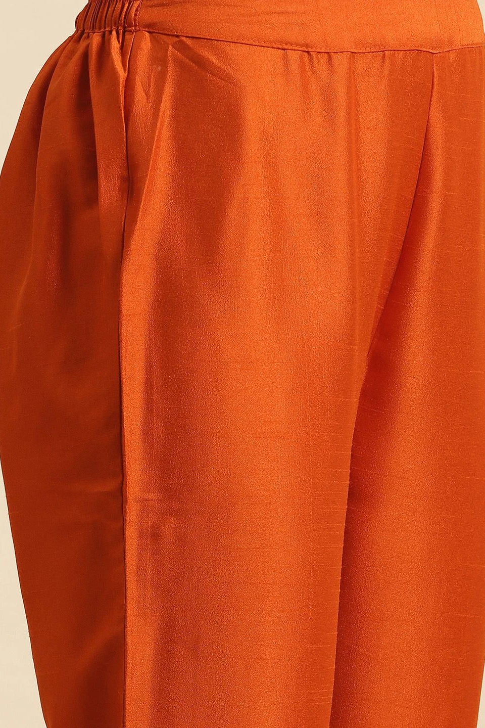 Enhance your festive wardrobe with this women orange embroidered silk kurta set paired with matching trouser and dupatta. Crafted from premium fabric with elegant detailing, this outfit offers a graceful silhouette perfect for weddings, celebrations and special occasions.