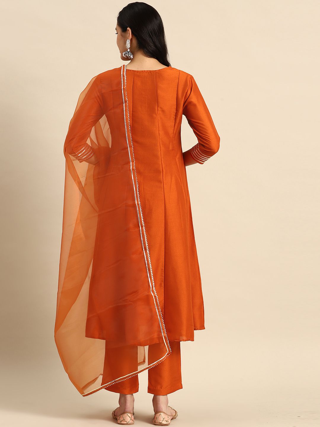 Key Features• Women orange embroidered kurta set• Premium pure silk fabric• Elegant neckline embroidery detailing• Includes matching trousers & dupatta• Soft, breathable and comfortable wear• Ideal for festive and wedding occasions• Traditional ethnic look with modern elegance