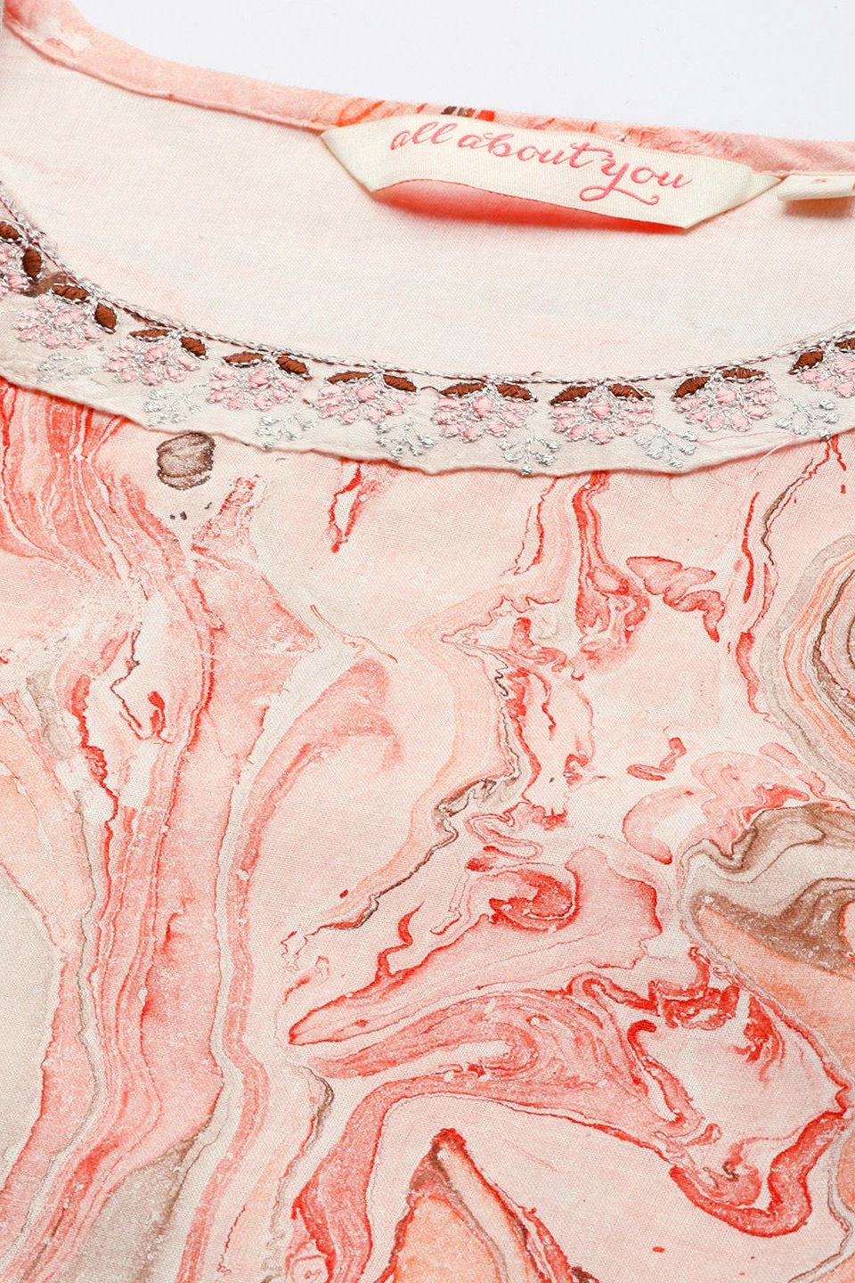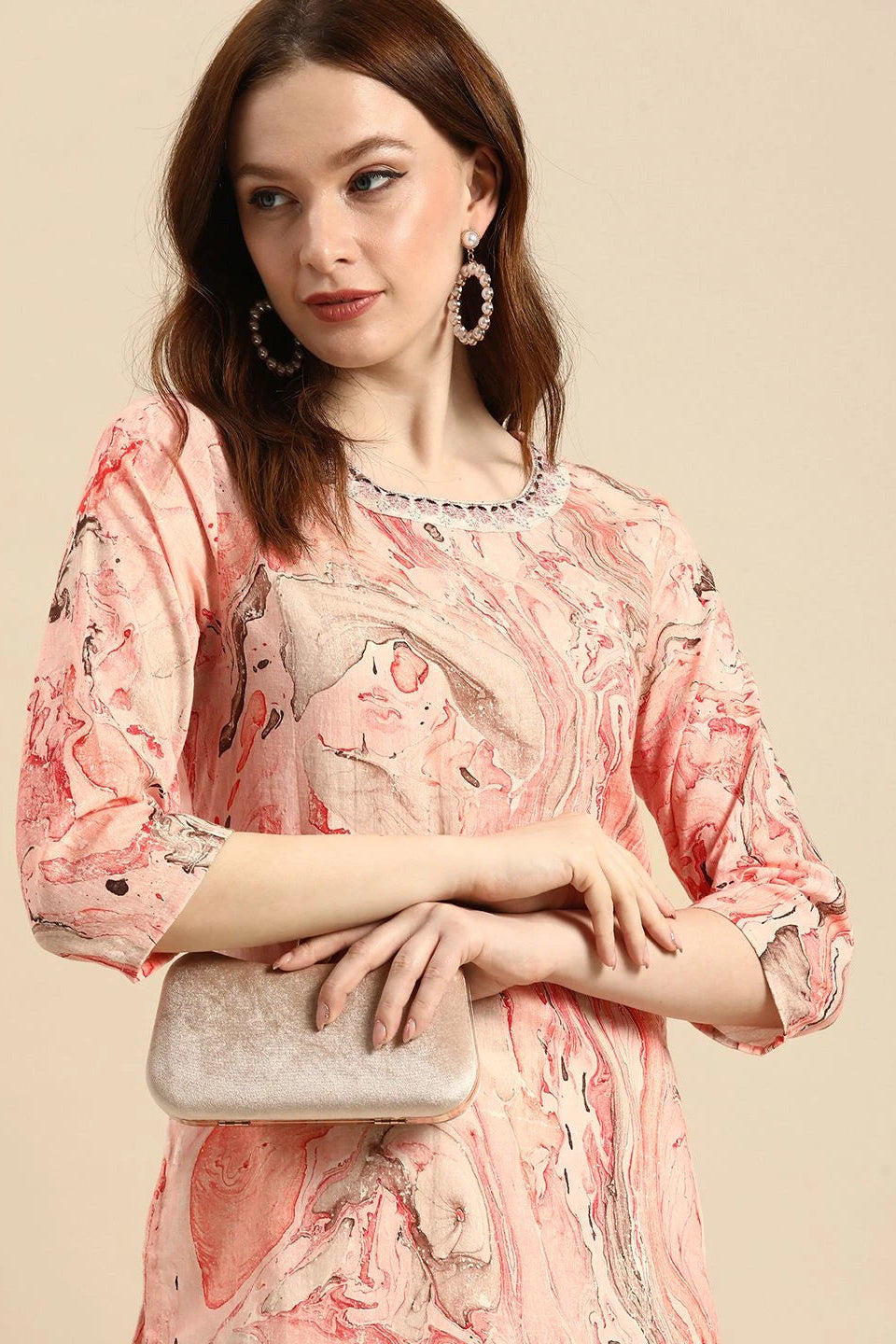Key Features• Women peach printed straight kurta• Stylish marble print design• Comfortable straight fit silhouette• Three quarter sleeves styling• Soft and breathable cotton fabric• Suitable for office and daily wear• Elegant casual ethnic look