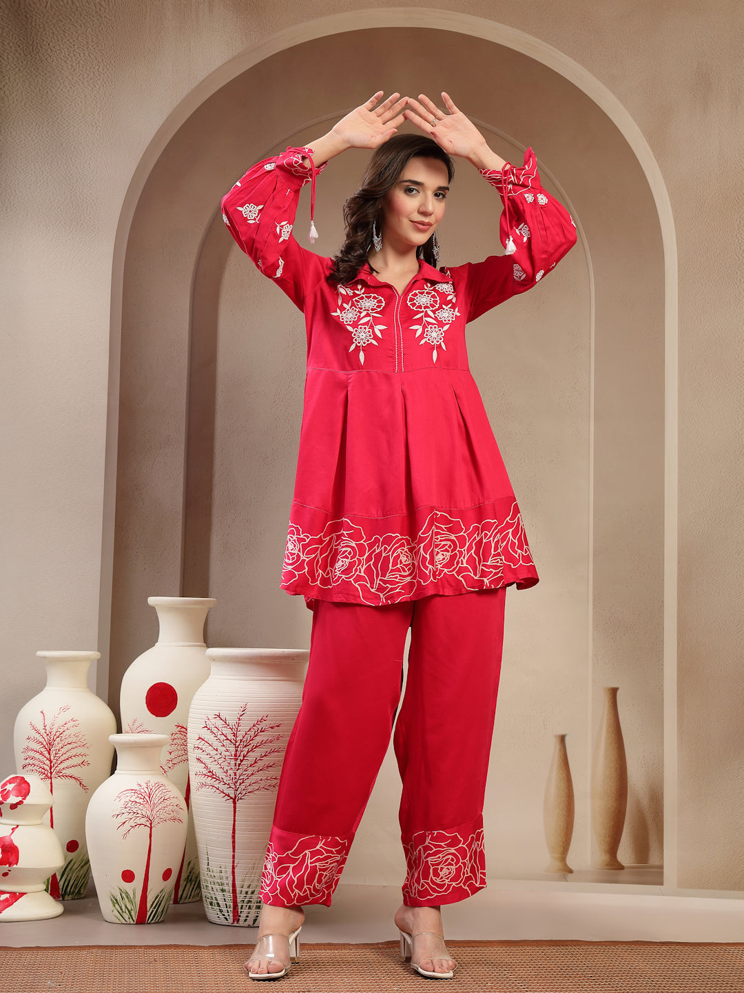 Women Pink Rayon Kurta Palazzo Co-ord Set