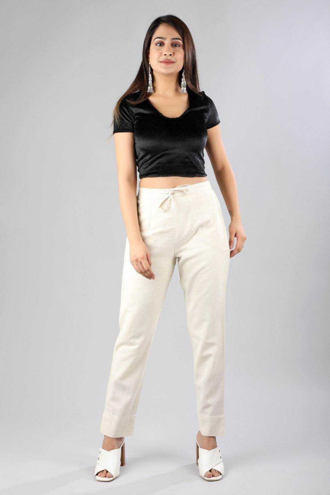 Women White Regular Cotton Trousers