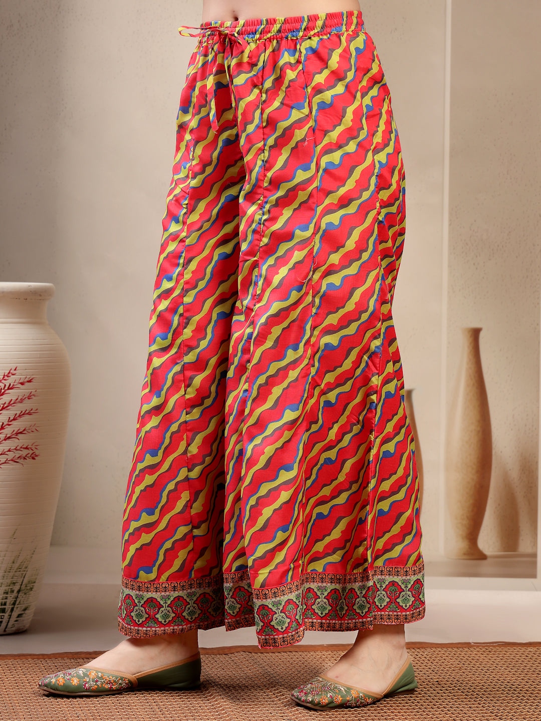 Women's Pink Embroidered Lehriya Kurta, Palazzo & Dupatta Set