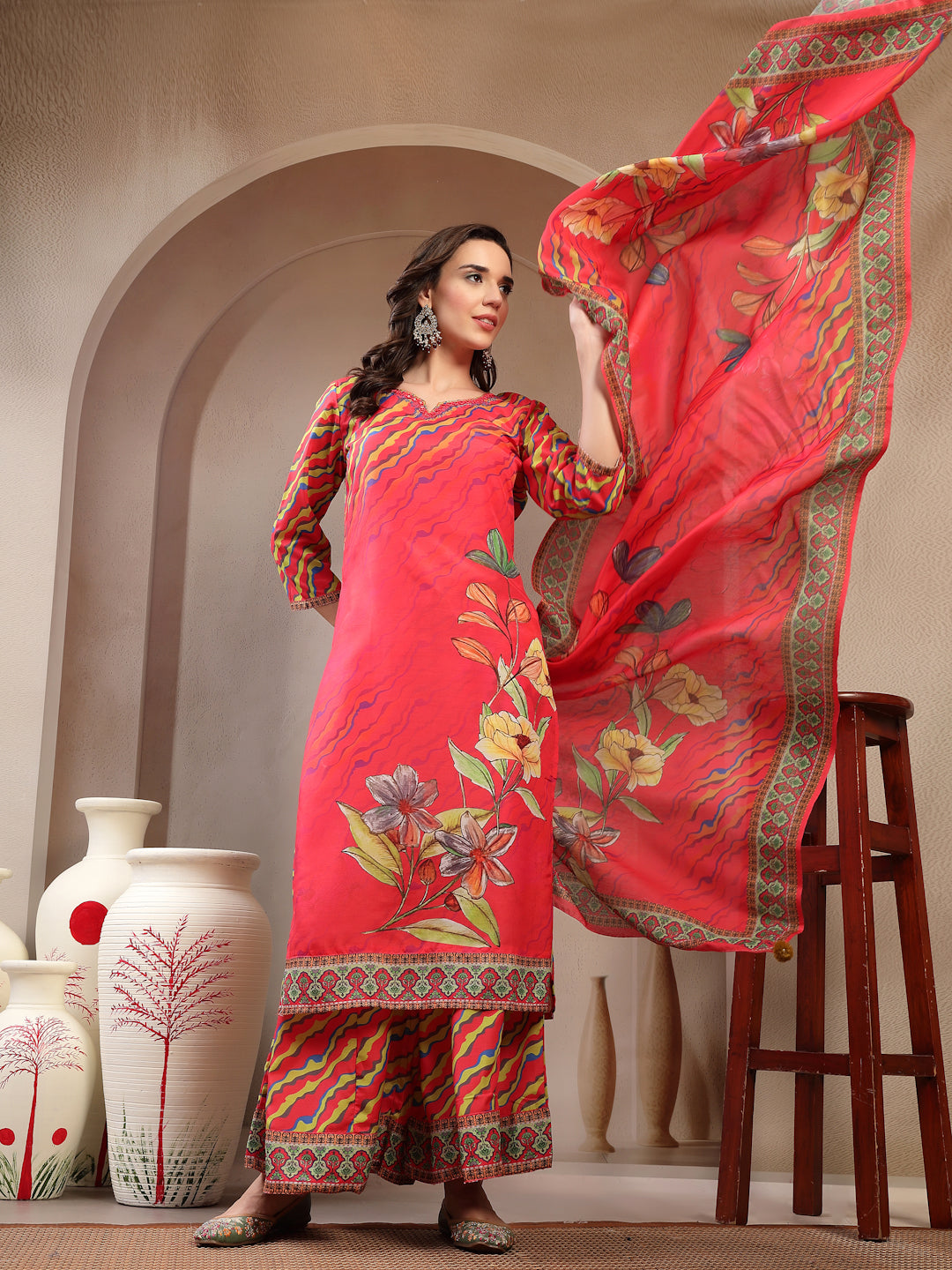 Women Embroidered Round Neck Straight Kurta & Trousers With Dupatta
